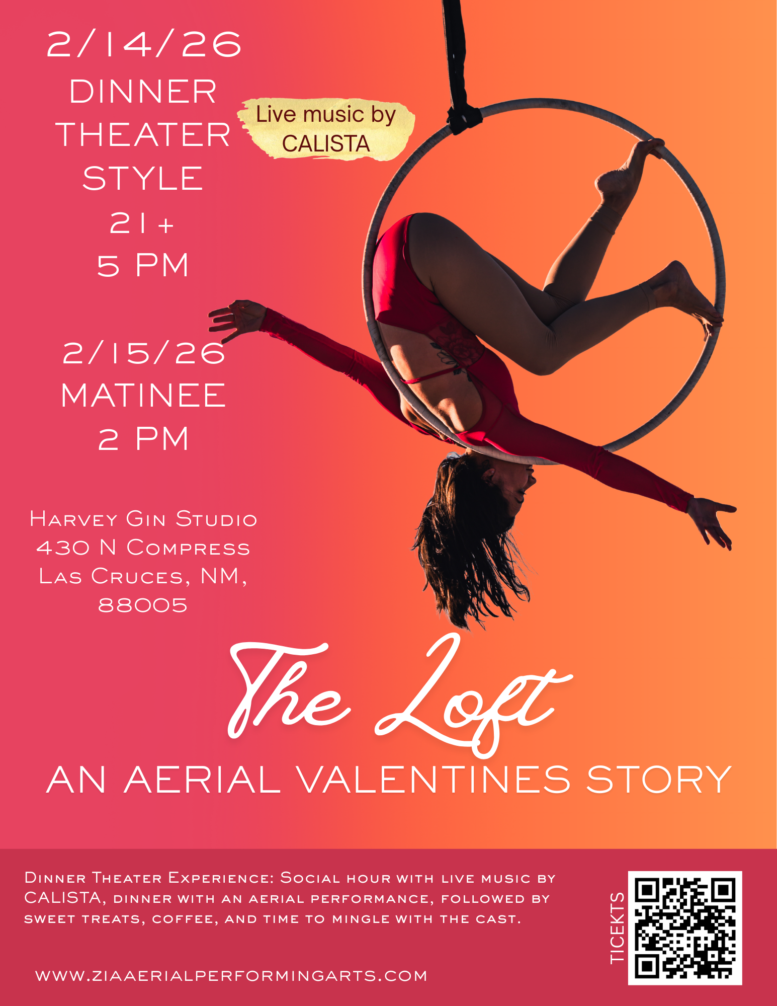 The Loft is an intimate aerial performance experience unfolding over Valentine’s weekend, exploring the many ways we love, connect, and exist alongside one another. Through breathtaking aerial work on silks, rope, lyra (aerial hoop), and dance, each piece offers a glimpse into a different story taking place within The Loft.