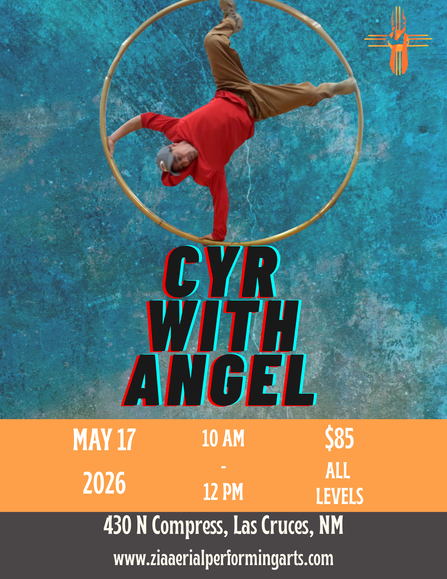 Curious about Cyr wheel? Join Angel for a fun and supportive workshop exploring the fundamentals of this dynamic apparatus. Students will work on balance, control, and momentum while building confidence moving inside the wheel.This workshop is open to all levels. If you’re new, it’s a great introduction. If you have some experience, come continue developing your skills.